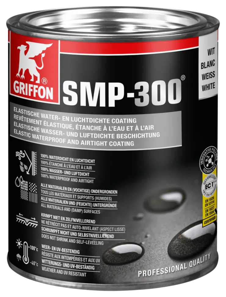 · SMP-300® kann auf beschiefertem Bitumen eingesetzt werden, allerdings wird von einer Anwendung auf unbehandeltem oder rohem Bitumen abgeraten, da es mit der Zeit zur Verfärbung oder Ablösung der Abdichtung kommen kann. · Wenn ein Fugendichtstoff in Kombination mit SMP-300® verwendet wird, empfehlen wir dringend die Verwendung eines neutralen Silikon- oder eines SMP-Dichtstoffs, z.B. Griffon S-200 oder Poly Max® Fix & Seal, da es ansonsten zu einer Verfärbung des Dichtstoffs kommen kann. · Nicht verwendbar für PE, PP und PTFE.
