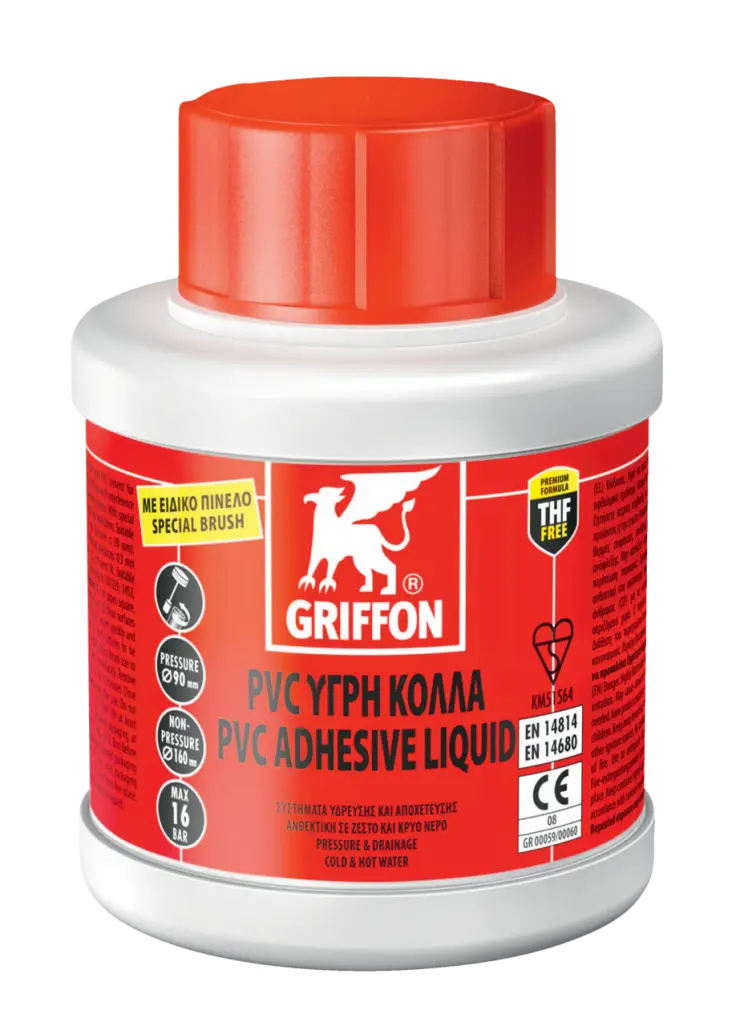 1. Λοξοτομήστε της σωλήνες , λειάνετέ και απομακρύνετε τα γρέζια. 2. Καθαρίστε τις επιφάνειες προς συγκόλληση με το καθαριστικό Griffon Cleaner και το πανί που δεν αφήνει χνούδι. 3. Εφαρμόστε την κόλλα με γρήγορες και ομοιόμορφες κινήσεις σε όλη την περιοχή (4-6x) και των δύο επιφανειών προς συγκόλληση (παχιά στρώση στη σωλήνα, λεπτό στρώση στην υποδοχή). 4. Ενώστε αμέσως. Αφαιρέστε την περίσσεια κόλλα. Μην επιβαρύνετε μηχανικά τη σύνδεση μέχρι να περάσουν τα πρώτα 10 λεπτά. Κλείστε καλά το δοχείο αμέσως μετά τη χρήση.