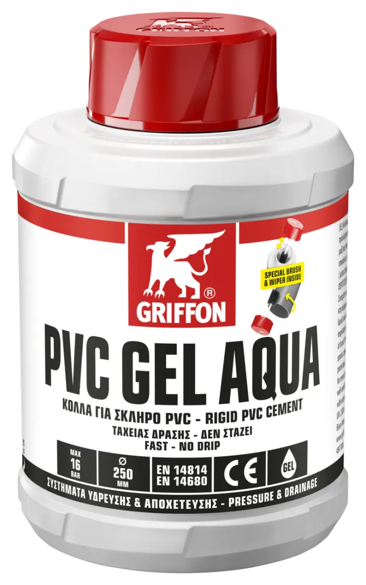 1. Λοξοτομήστε τhς σωλήνες , λειάνετε και απομακρύνετε τα γρέζια. 2. Καθαρίστε τις επιφάνειες προς συγκόλληση με το καθαριστικό Griffon Cleaner και πανί που δεν αφήνει χνούδι . 3. Εφαρμόστε την κόλλα με γρήγορες και ομοιόμορφες κινήσεις σε όλη την περιοχή (4-6x) και των δύο επιφανειών προς συγκόλληση (παχιά στρώση στο σωλήνα, λεπτό στρώση στην υποδοχή). 4. Ενώστε αμέσως. Αφαιρέστε την περίσσεια κόλλα. Μην επιβαρύνετε μηχανικά τη σύνδεση μέχρι να περάσουν τα πρώτα 10 λεπτά. Κλείστε καλά το δοχείο αμέσως μετά τη χρήση.