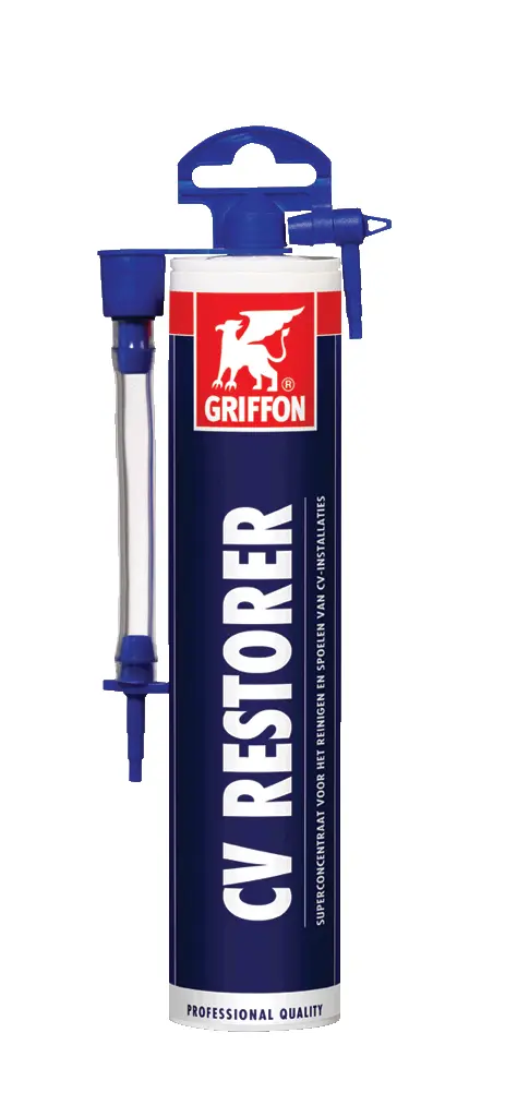 Easy to use, because the system can remain in normal operation during use. Keep a cloth or bucket at hand to catch the water that escapes by the overpressure when removing the venting pin. Simple and easy to add via the radiator or the installation’s fill valve. Does not attack metal (including aluminium), synthetics and other materials. Compatible with all other Griffon Central heating Water treatment products. A cartridge is sufficient to protect a heating system of moderate size (up to 10 radiators = about 100 liters). Overdose is not a problem.