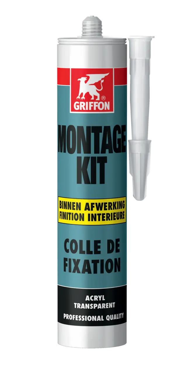 This mounting adhesive is white when it comes out of the cartridge. This mounting adhesive dries transparent. Depending on the materials and ambient circumstances (e.g. temperature), this may take some time. When bonding pure gypsum materials first do a test bonding. If the surface is very loose, first treat with a penetrating primer or fixation agent.