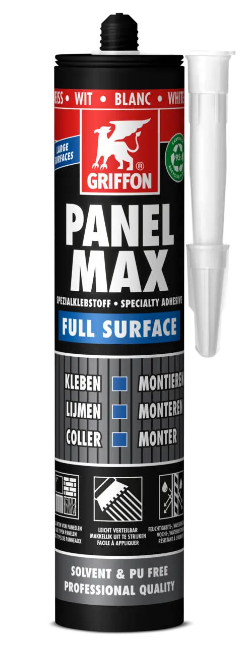 Follow the detailed application instructions in the technical data sheet (->QR-code). Only apply at temperatures above +5 °C. Either spread the adhesive over the full surface with a notched trowel (toothing C1) or apply in vertical, max. 30 cm long beads at a distance of approx. 10-30 cm on one of the (clean) surfaces, align the panel and press down evenly and firmly.