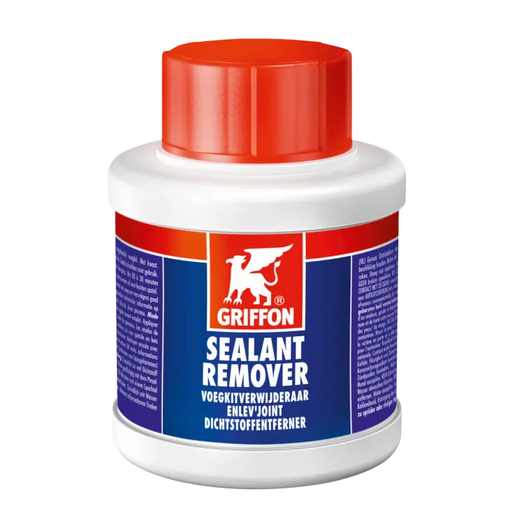 Shake closed bottle vigorously for about a minute. Cut old sealant loose with a sharp box cutter/ knife. Use the hook of the GRIFFON Multitool to pull the old sealant out of the joint. Remove as much of the existing sealant as possible. Apply the paste generously onto the old sealant residue. Allow to act for at least 30 minutes. Remove old sealant residues with cleaning cloth, glass scraper or sanitary sponge. If necessary, repeat the treatment. Clean the joint thoroughly with a sponge and water. Degrease the surface with a lint-free cloth and let it dry thoroughly. Afterwards it's ready for a new sealant application.