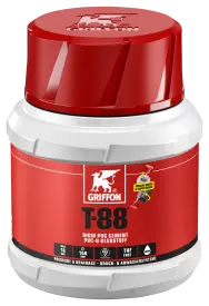 1. Cut pipes square, chamfer edges and deburr. 2. Clean surfaces with Griffon Cleaner and Cleaner Cloth. 3. Apply cement rapidly and evenly all around (4-6x) on both surfaces (pipe thick, socket thin). 4. Assemble joint immediately. Remove excess cement. Let joints rest for 10 minutes. Close packaging properly immediately after use.