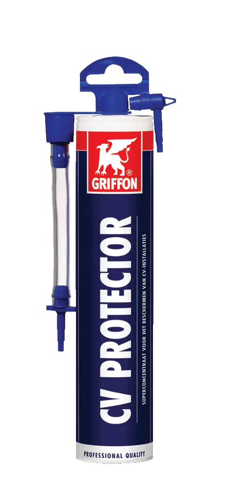 Un système doté de Griffon Protector est protégé pendant environ 3 ans de l’oxydation et des dépôts de tartre. L’appoint ou le renouvellement intermittent de l’eau peut écourter cette période de protection. Répéter le traitement en cas de vidange totale du système. Facile à utiliser parce que le système peut continuer à fonctionner normalement pendant l’utilisation. Tenir un chiffon ou un sceau à portée de main pour récupérer l’eau qui s’échappe sous l’effet de la surpression au moment de l'enlèvement de la goupille de purge. Simple et facile à ajouter au moyen du radiateur ou du robinet de remplissage de l’installation. N’attaque pas les métaux (même aluminium), plastiques et autres matériaux. Peut être combiné avec tous les autres produits de traitement d’eau CC Griffon. Une cartouche suffit pour protéger une installation de chauffage moyenne (jusqu’à maximum 10 radiateurs = env. 100 litres). Un surdosage ne pose pas de problème.