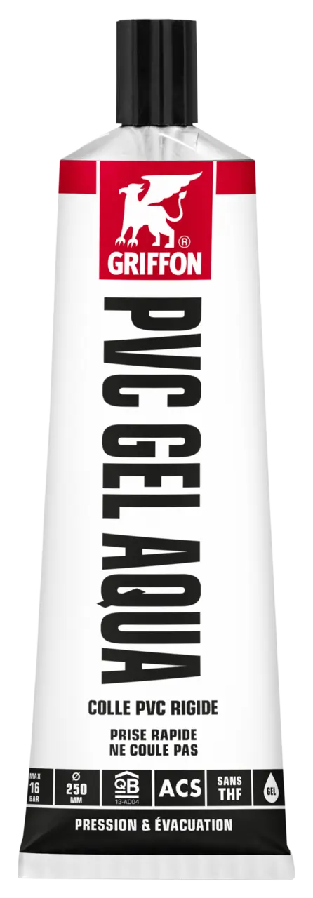 1. Scier les tuyaux à l’équerre, chanfreiner et ébavurer. 2. Nettoyer les surfaces à coller avec Griffon Cleaner et Cleaner Cloth. 3. Appliquer rapidement et uniformément la colle dans le sens de la longueur des deux surfaces à coller (couche épaisse sur le tuyau, couche fine dans le manchon). 4. Emboîter directement le manchon. Enlever l’excès de colle. Ne pas soumettre l’assemblage à une charge mécanique pendant les 10 premières minutes. Après utilisation, bien fermer l’emballage.
