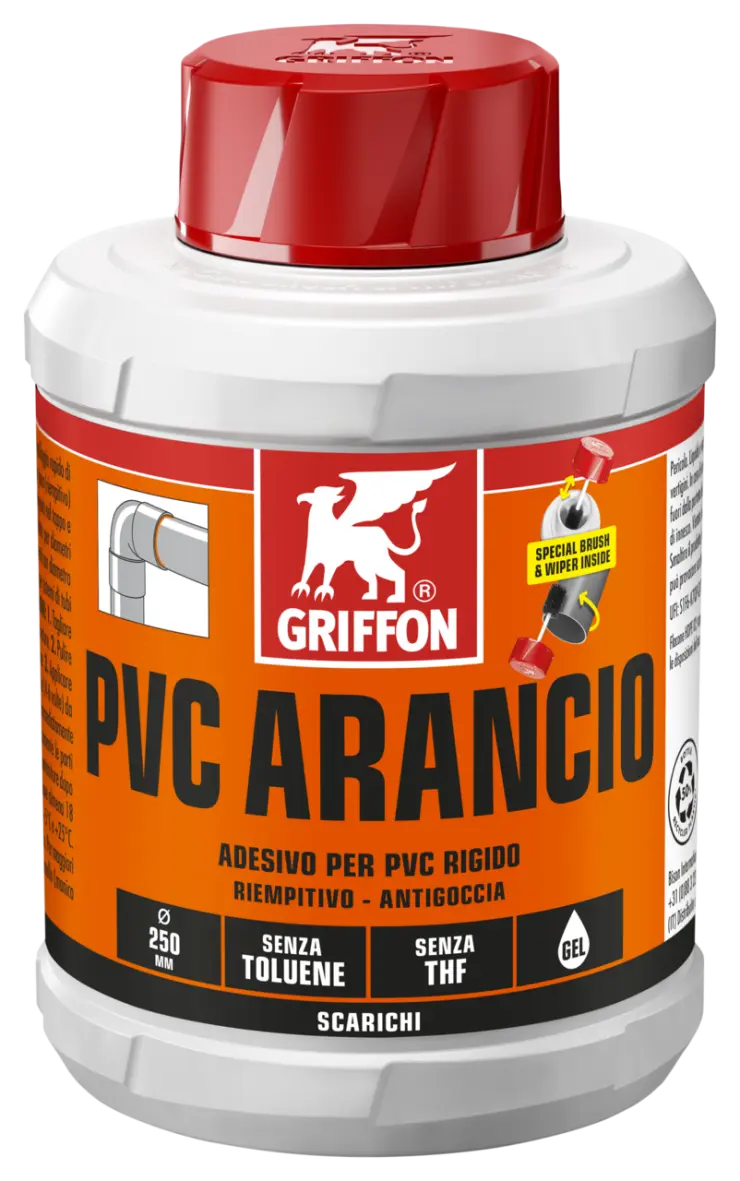 Per l’incollaggio di tubi, manicotti e raccordi con accoppiamento di precisione e con gioco (riempitivo) per impianti in sistemi di scarico. Speciale pennello integrato nel tappo per un’applicazione semplice e veloce. Adatto per diametri ≤ 250 mm. Tolleranza massima 0,6 mm sul diametro. Per innesti con diametro tubo maggiore del diametro raccordo la tolleranza massima è 0,2 mm. Adatto per sistemi di tubi conformi alle norme EN 1329, 1453 e 1455.