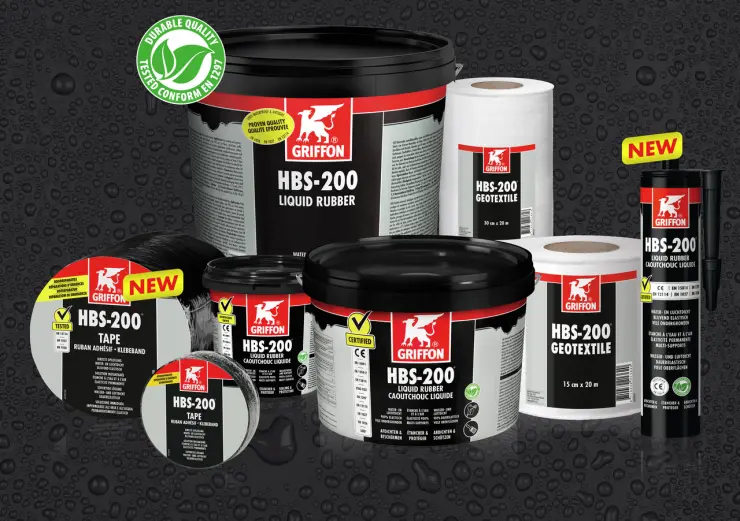 Voor gebruik HBS-200® Liquid Rubber en SMP-300® coating handmatig roeren tot er een homogene kleur ontstaat. Roeren met een elektrische mixer met een hoog toerental wordt afgeraden. Bij naad-, kier- en scheuroverbruggende toepassingen dient gebruik te worden gemaakt van GRIFFON GeoTextile. GRIFFON GeoTextile dient te worden aangebracht in nog natte HBS-200® Liquid Rubber. Vervolgens direct afstrijken met tweede laag HBS-200® Liquid Rubber. Zorg altijd voor een laagdikte van minimaal 2 mm na uitharding.