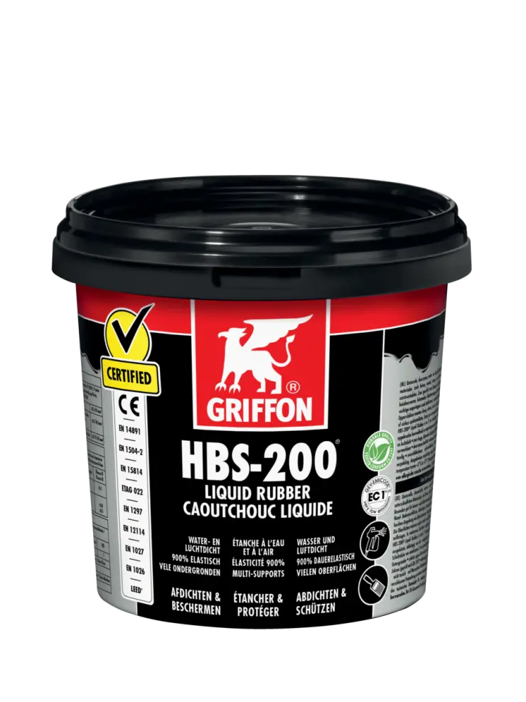 Voor gebruik handmatig roeren tot er een homogene kleur ontstaat. Roeren met een elektrische mixer met een hoog toerental wordt afgeraden. Breng op in meerdere lagen. Bij voorkeur de laag laten drogen alvorens de volgende laag aan te brengen. Droogtijd is afhankelijk van de relatieve luchtvochtigheid, temperatuur en ondergrond. Bij naad-, kier- en scheuroverbruggende toepassingen GRIFFON HBS-200® GeoTextile gebruiken. GRIFFON HBS-200® GeoTextile dient te worden aangebracht in nog natte HBS-200® Liquid Rubber. Vervolgens direct afstrijken met tweede laag HBS-200® Liquid Rubber. Zorg altijd voor een laagdikte van minimaal 2 mm na uitharding.