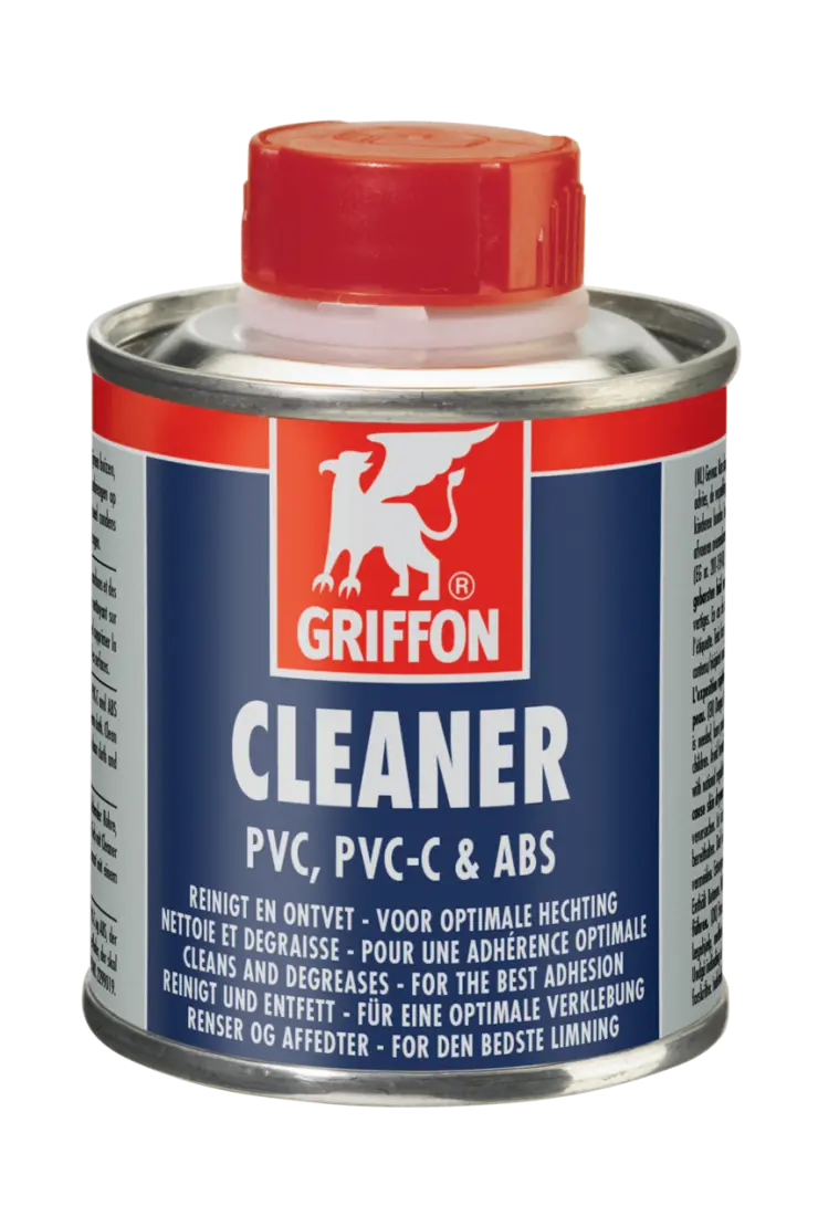 Voor het reinigen en ontvetten van buizen, moffen en fittingen van (hard) PVC, PVC-C en ABS. Tevens geschikt voor het verwijderen van niet uitgeharde lijmresten en het reinigen van kwasten en gereedschap. Gebruiken in combinatie met Griffon Cleaner Cloth.