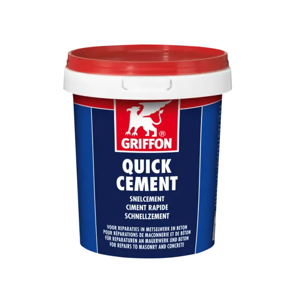 Bij lage temperaturen kan de uitharding versneld worden door gebruik te maken van lauw of warm water. Maak voor grotere reparaties een mengsel van GRIFFON Snelcement, water en fijn zand.