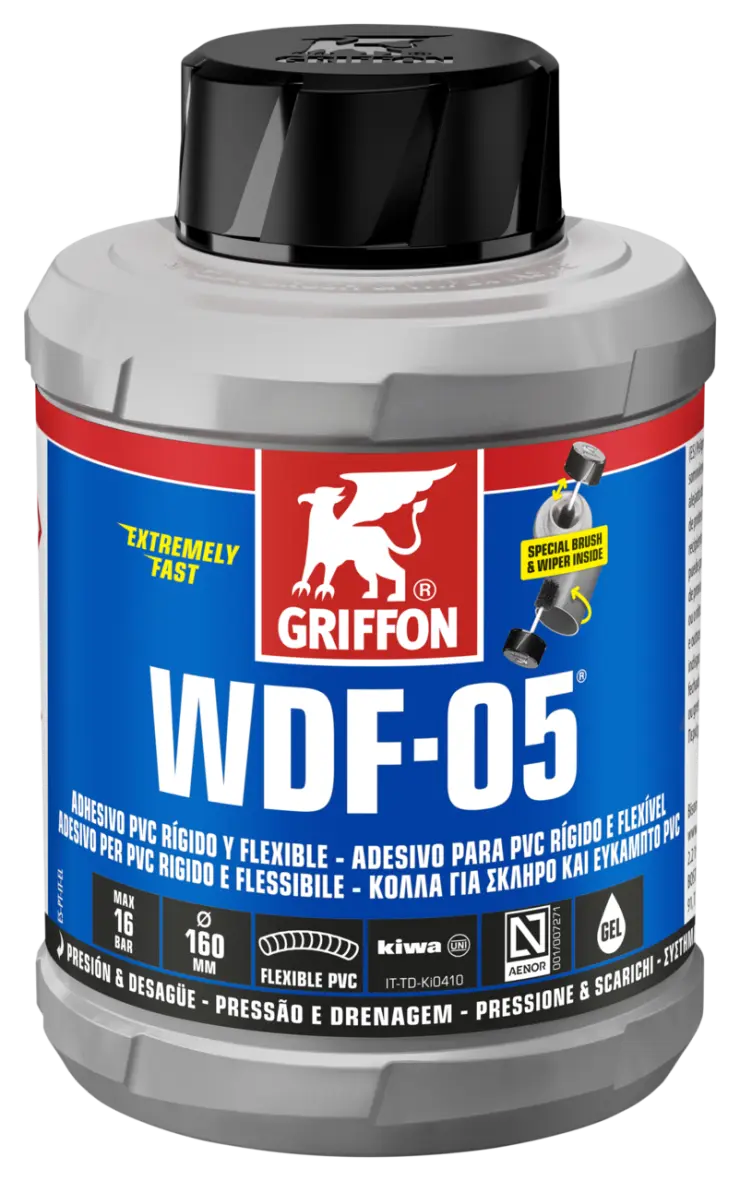 1. Corte os tubos, chanfre e alise. 2. Limpe as superfícies a colar com Griffon PVC Cleaner e um pano de limpeza. 3. Aplicar a cola de forma rápida e uniforme, em toda a volta (4-6x) em ambas as superfícies (abundantemente no tubo e finamente na manga). 4. Junte as peças imediatamente. Remova o excesso de cola. Não manusear a união da tubagem durante os primeiros 10 minutos. Feche bem o recipiente imediatamente após a sua utilização.